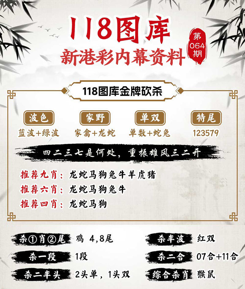 | 064期 | 绝杀→[牛 羊 龙] | 開:?00 准 |